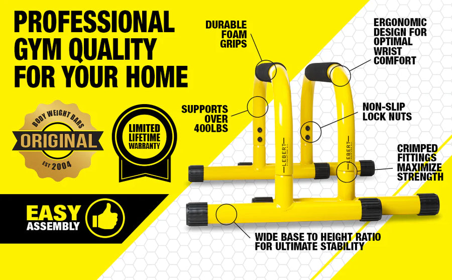 Lebert Parallette Bars are an essential piece of equipment for any body-weight strength training exercises and workouts.
